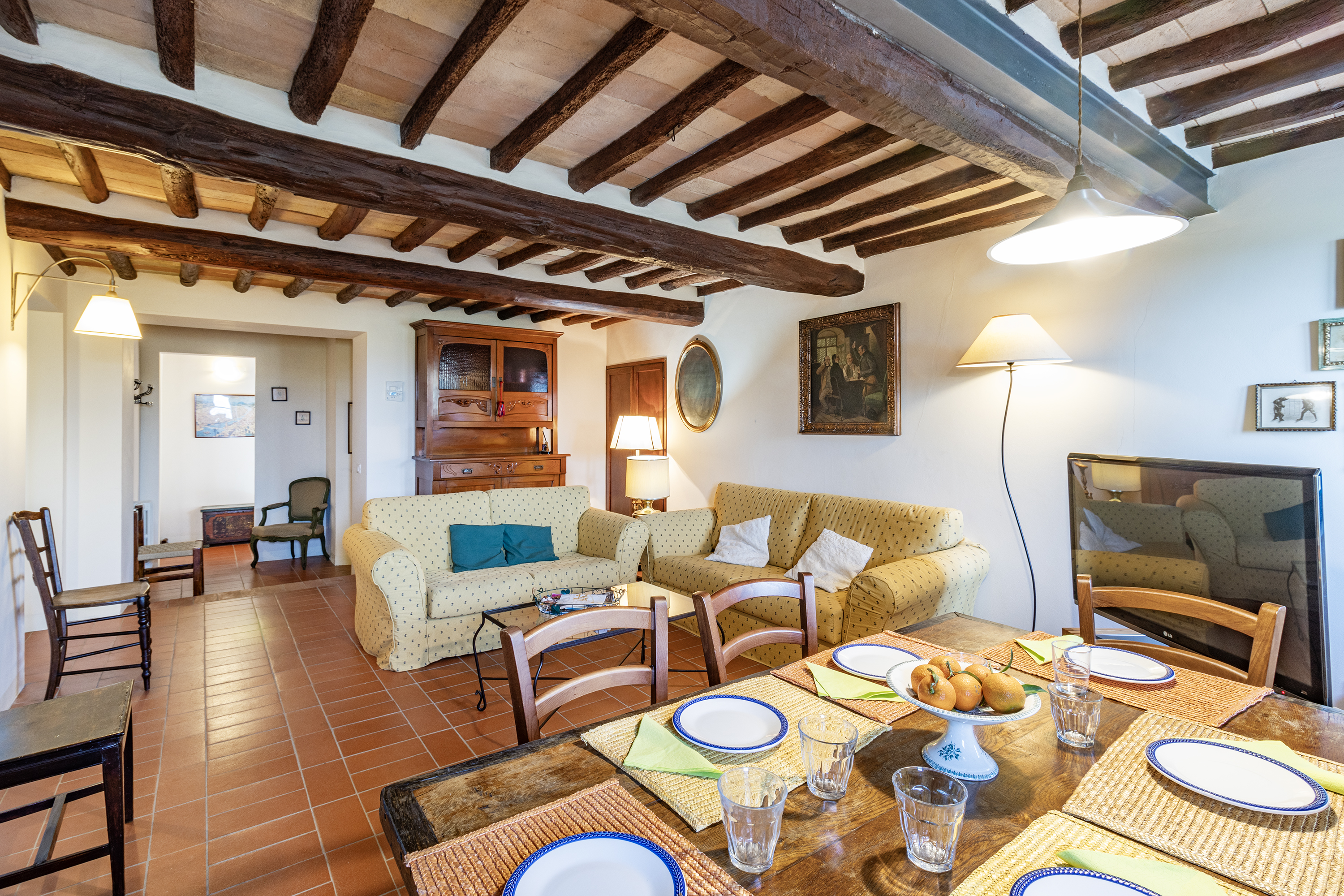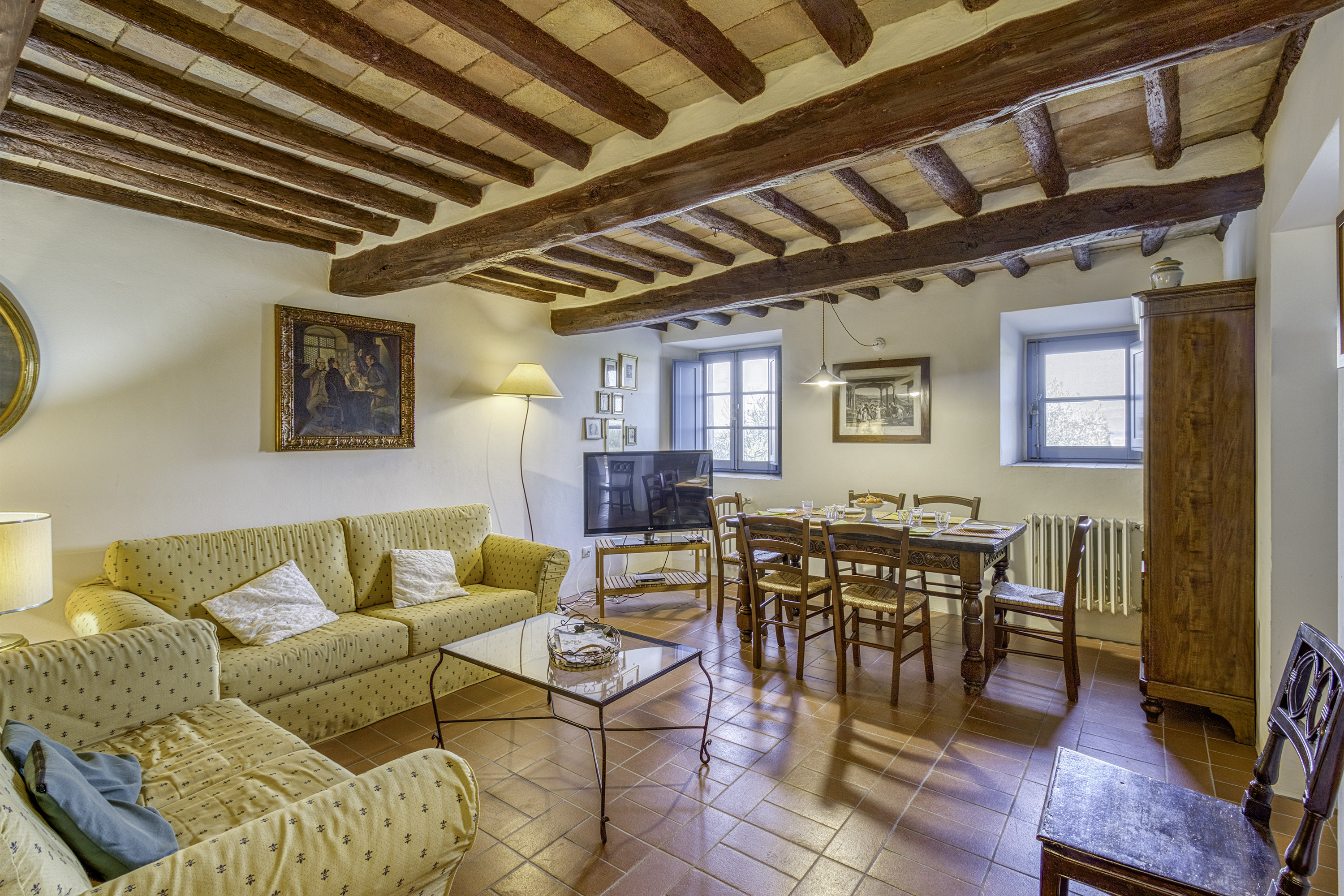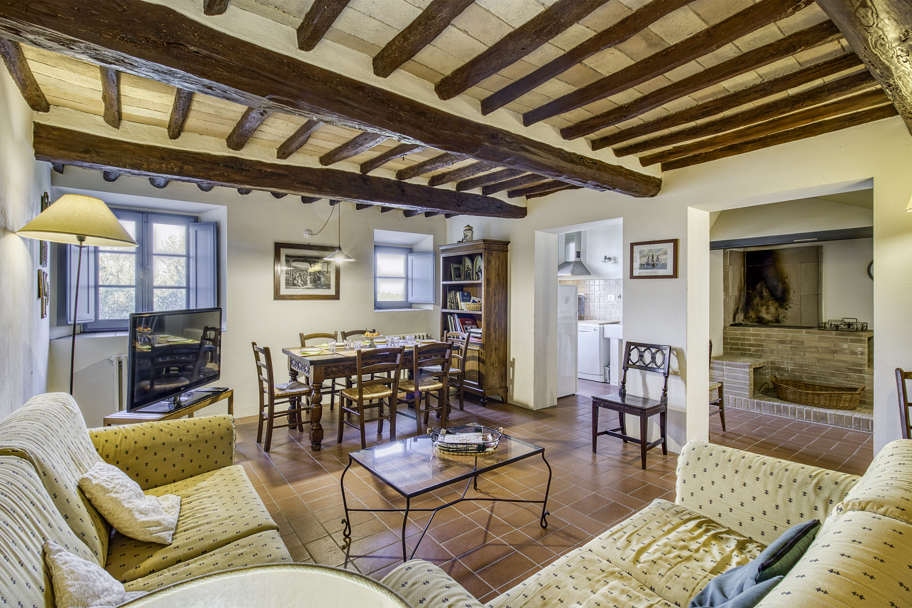Zorgvuldig ingericht om een comfortabele en uitnodigende sfeer te creëren, is deze authentieke halfvrijstaande Toscaanse villa verdeeld in drie appartementen.