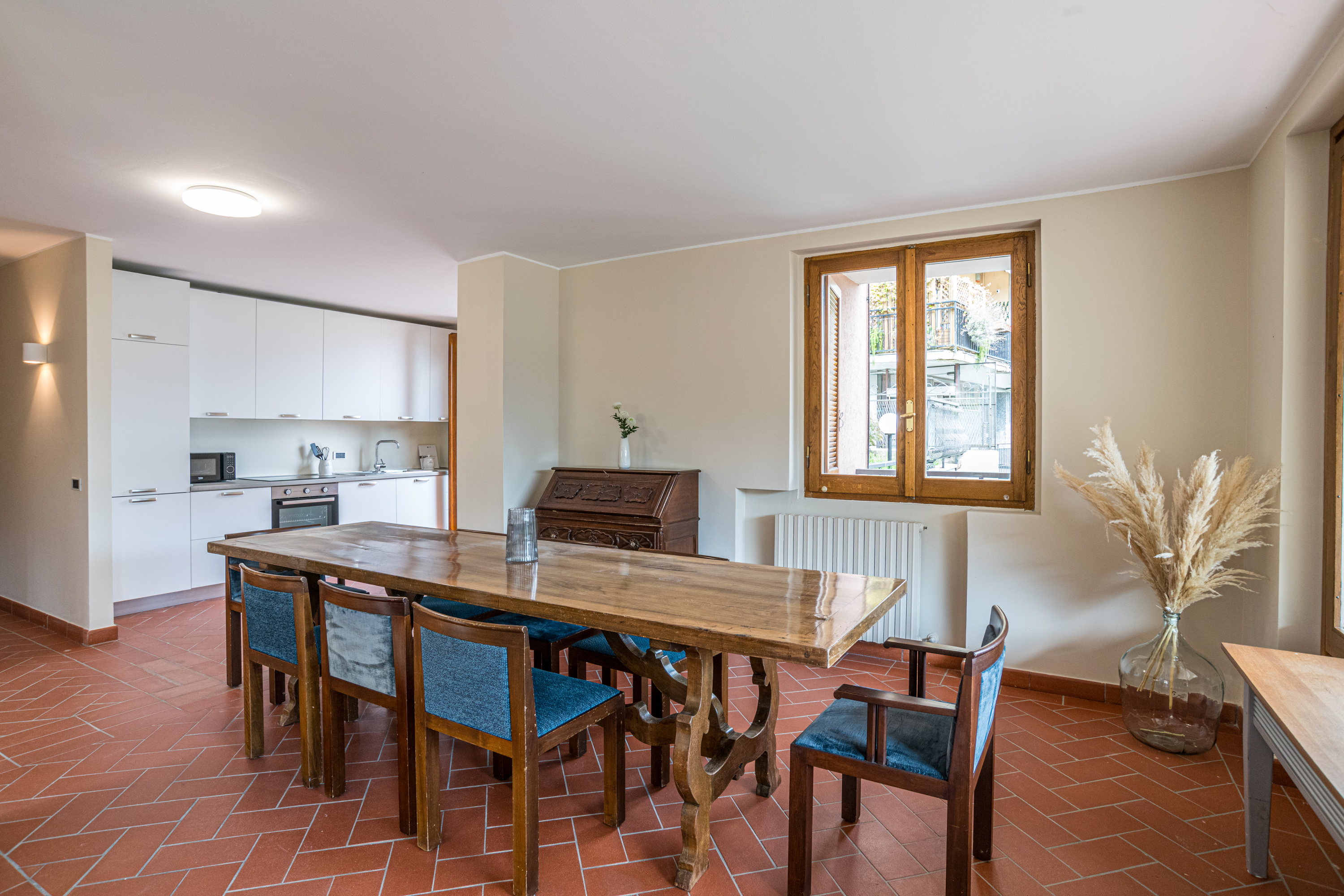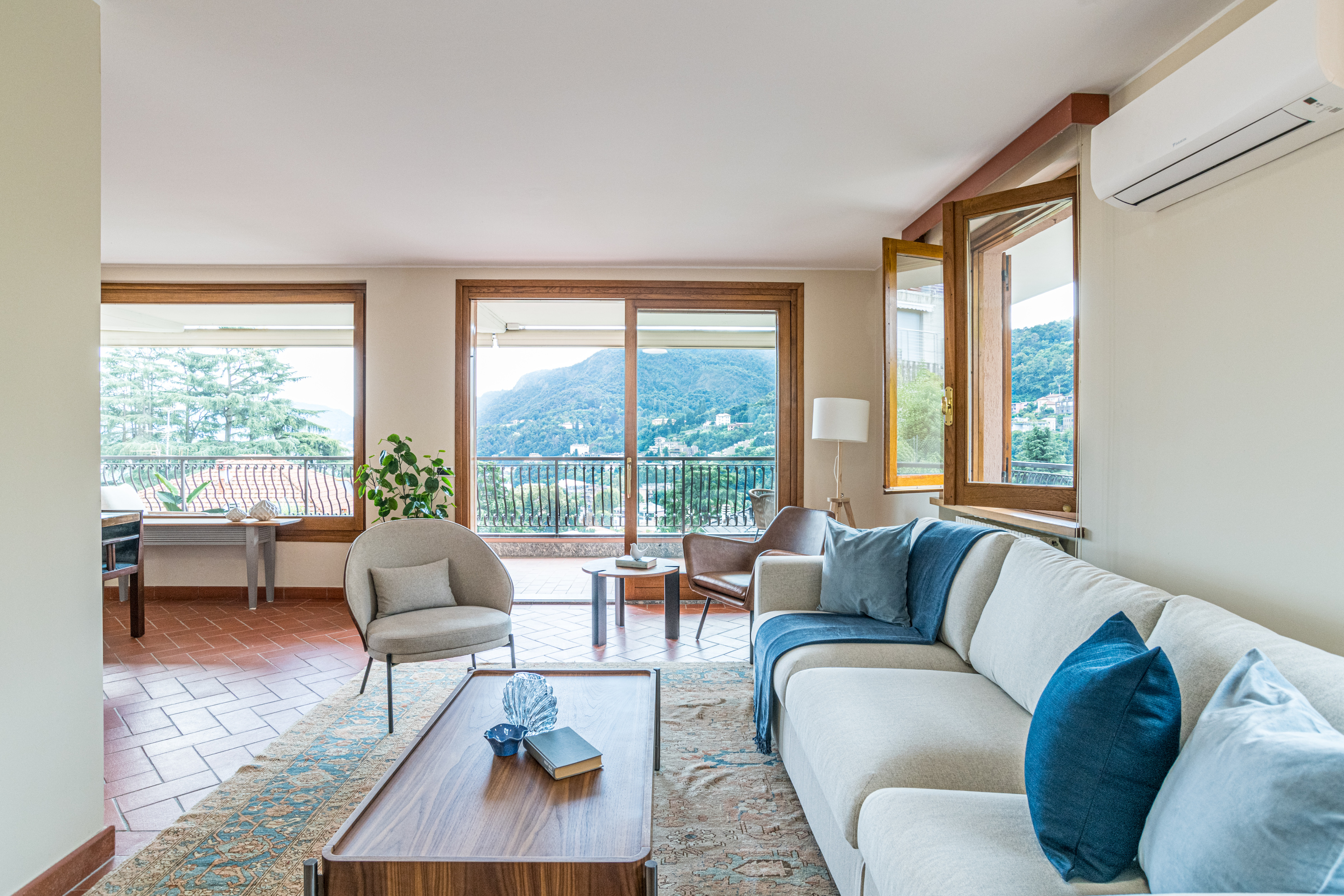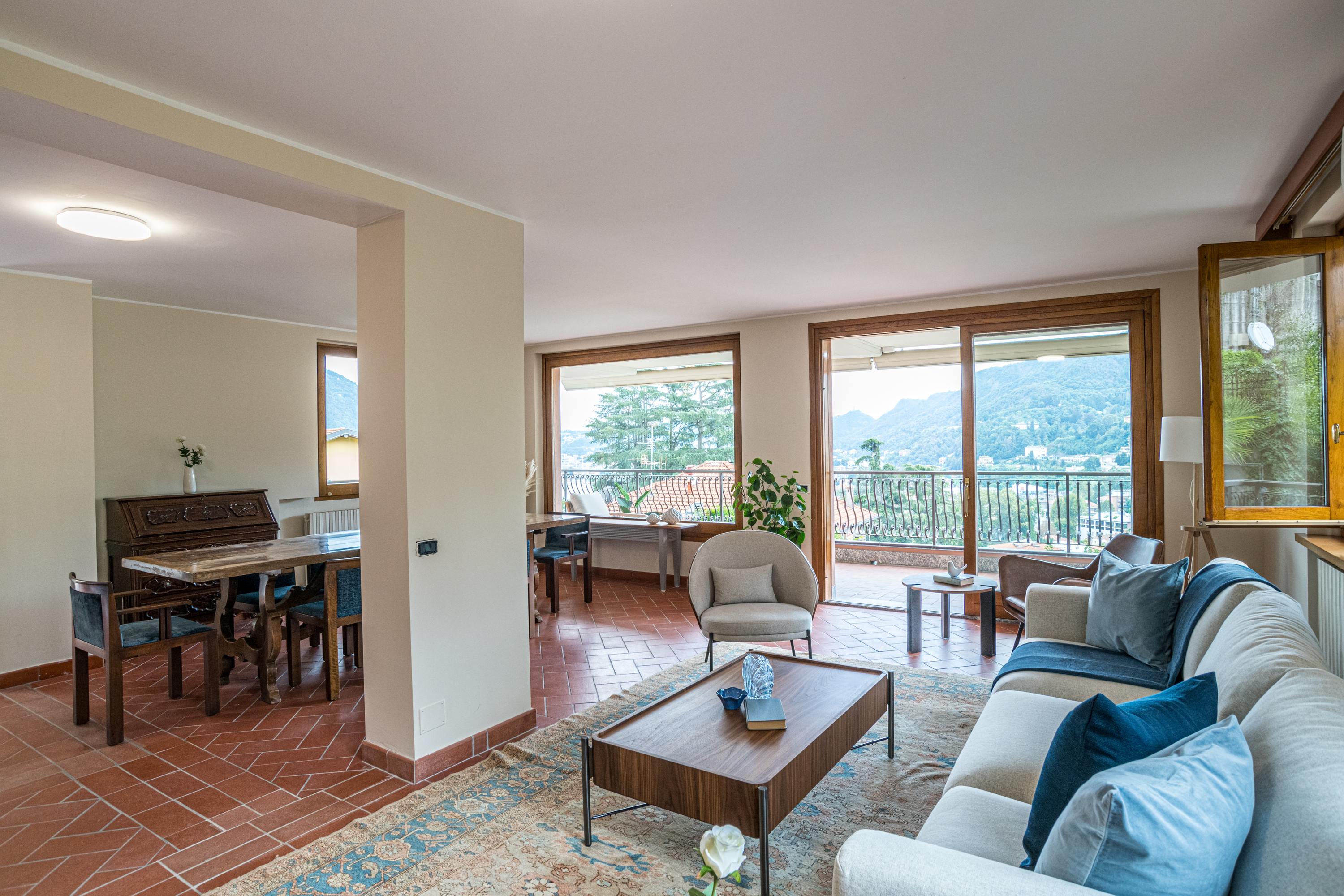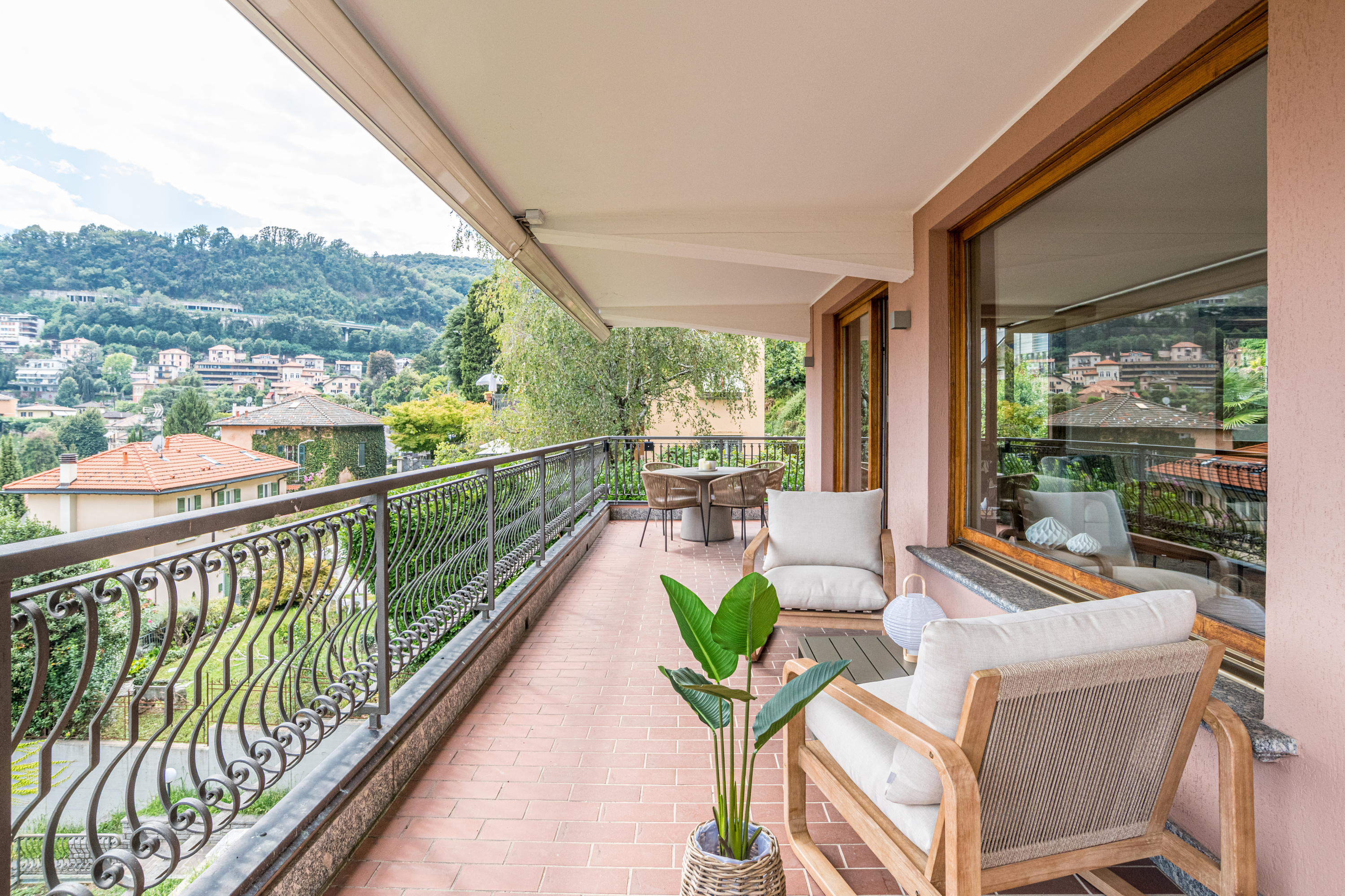 Rustig gelegen op een zonnige heuvel, op slechts 4 km van het centrum van de charmante stad Como aan het meer, bevindt deze woning zich op de eerste verdieping van een modern gebouw met drie verdiepingen. Het beschikt over een privéterras en een kleine tuin met een zonnedek en een ruimte om buiten te dineren.