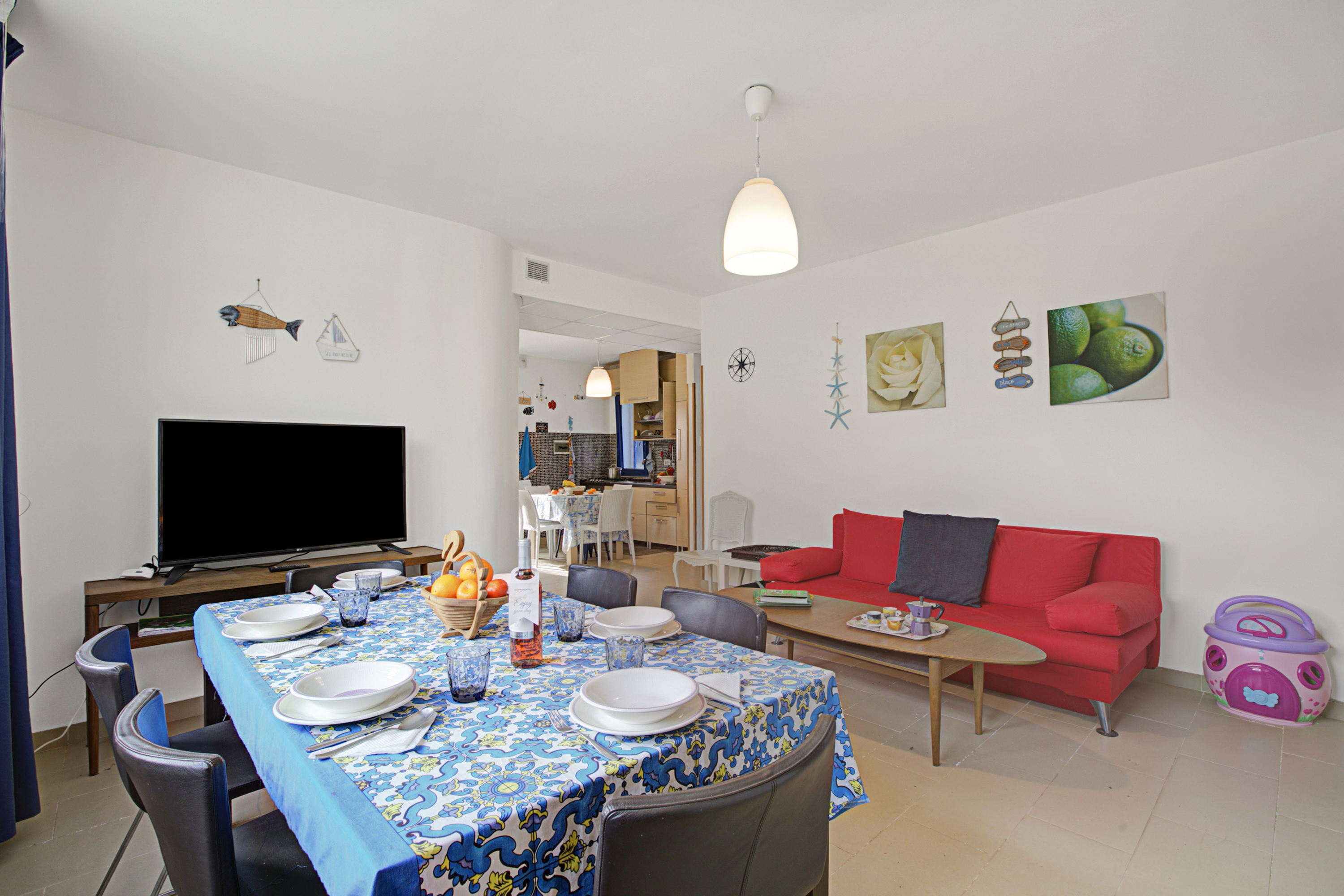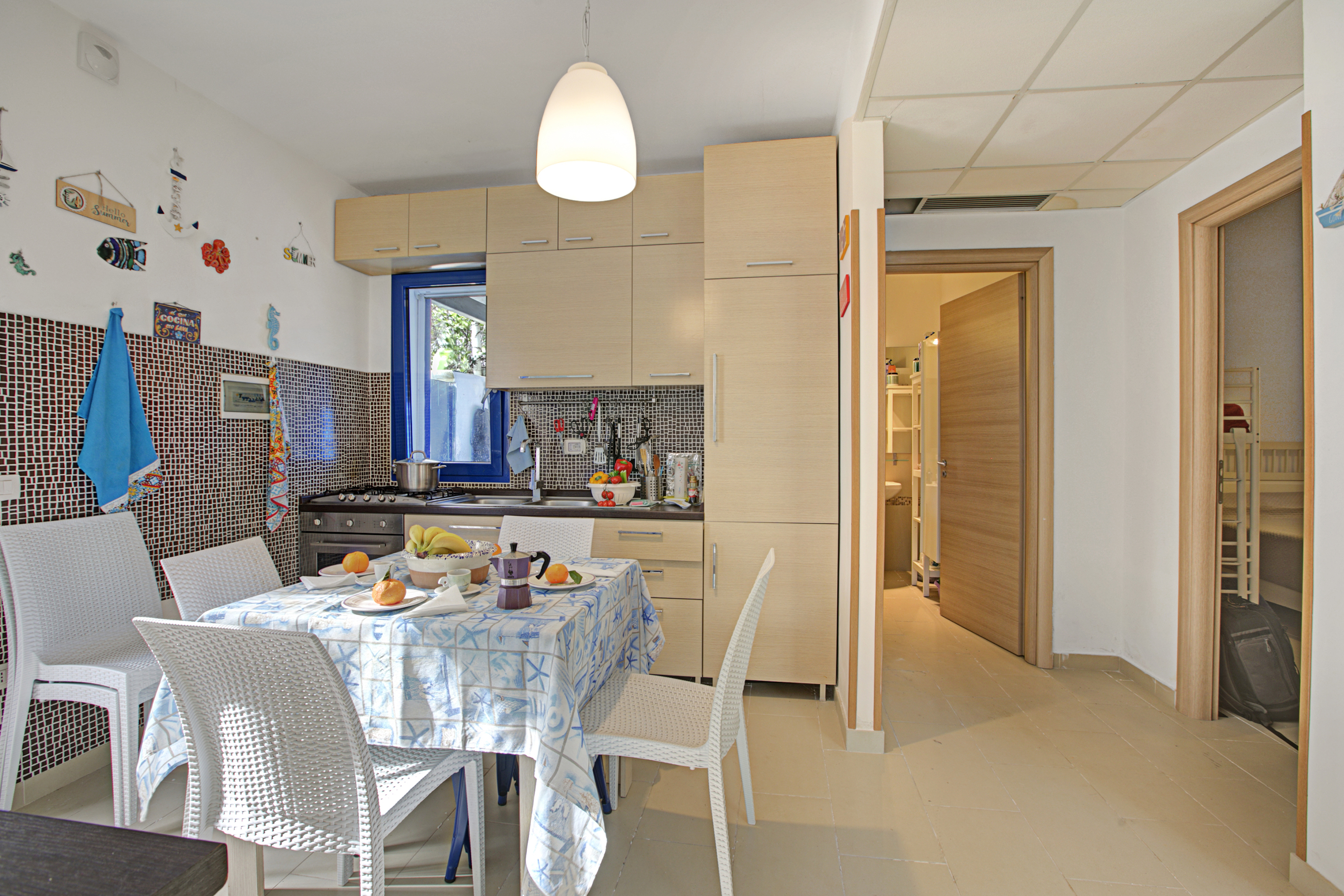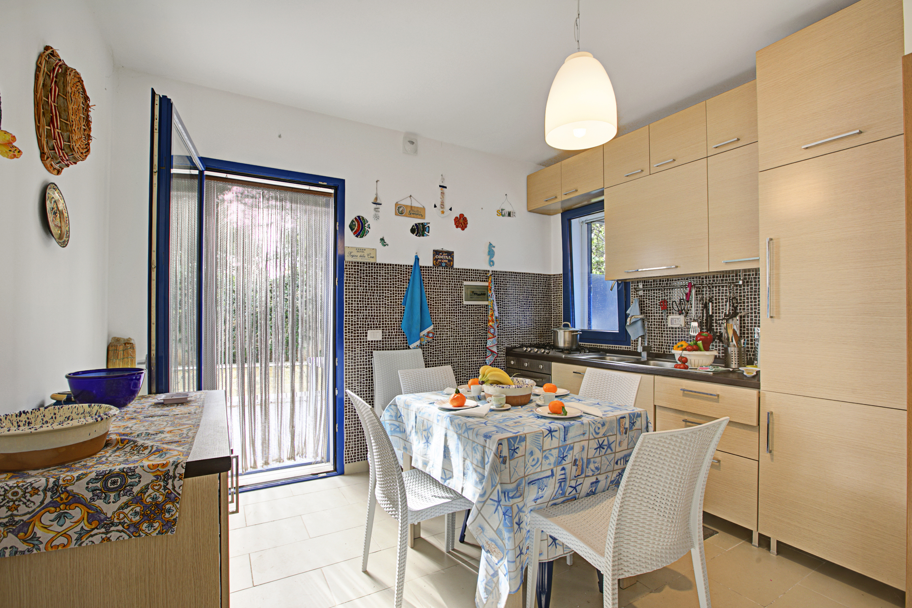 Binnenin beschikt de woonkamer over een gezellig tweepersoons slaapbank, een televisie en een eettafel voor ontspannen maaltijden. De moderne kitchenette is uitgerust met alle essentiële apparaten, waaronder een koffiezetapparaat, oven, kookplaat en koelkast. Gasten kunnen gebruikmaken van een gedeeld zwembad, perfect om af te koelen op warme, zonnige dagen. Het terras biedt ook een eetgedeelte in de buitenlucht met een tafel en stoelen – ideaal om te genieten van maaltijden in het heerlijke Puglische klimaat.