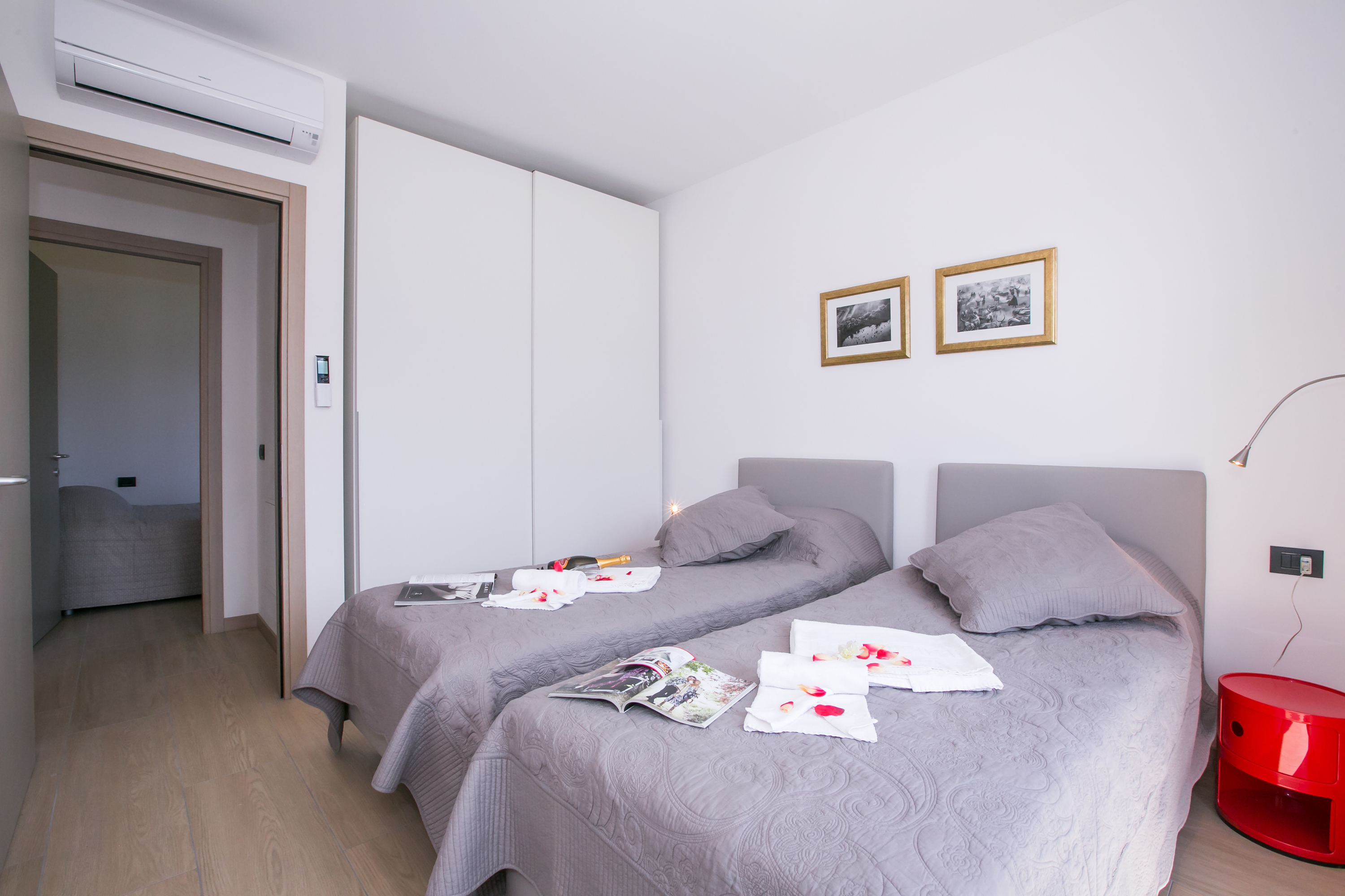Slaapkamer 2 • Een uitnodigende 2e slaapkamer met samenstelbare eenpersoonsbedden, kast en balkon