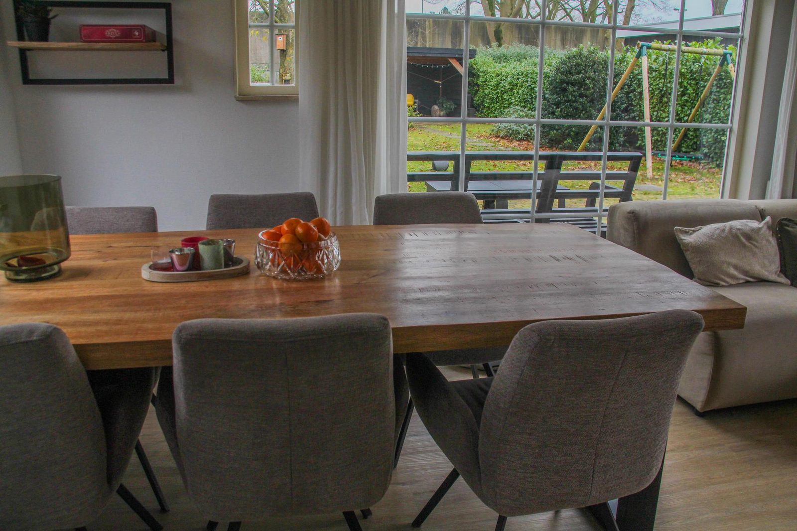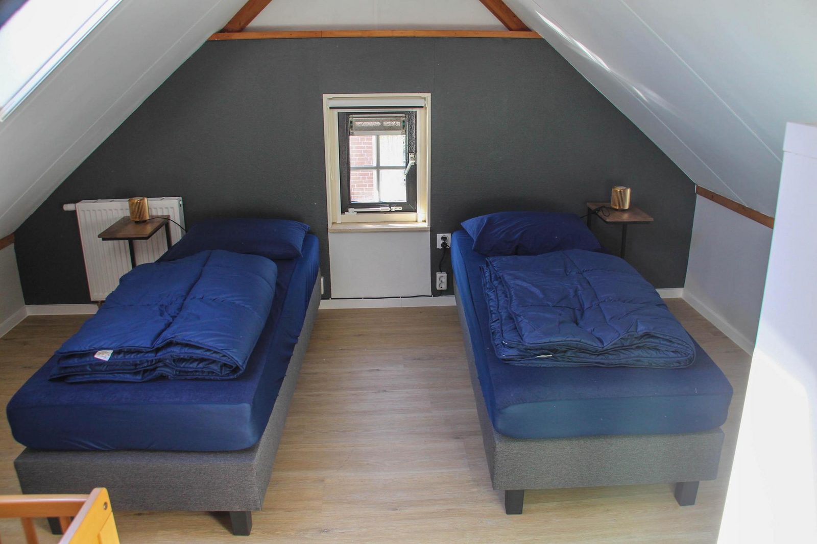 Buiten heeft u de beschikking over een grote privétuin met speeltoestellen, waaronder een trampoline. Daarnaast heeft u ook de beschikking over een schuurtje voor het stallen van uw fietsen en het opladen van elektrische fietsen.