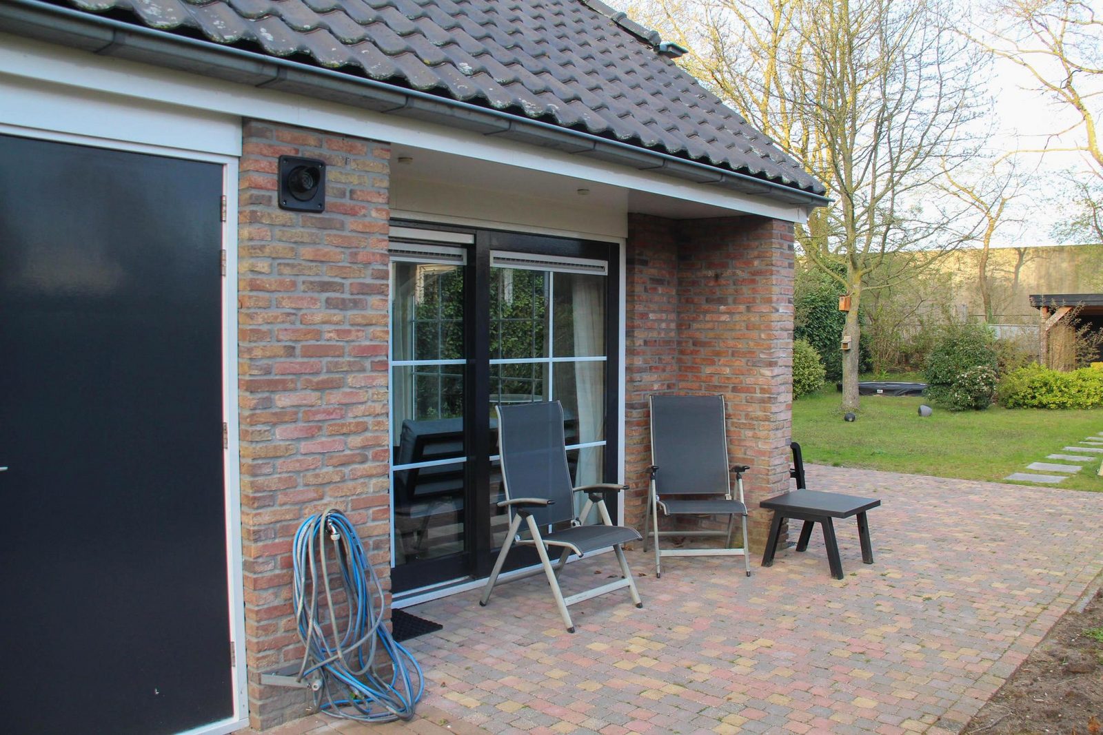 Buiten op het terras heeft u de beschikking over tuinmeubilair met een parasol.