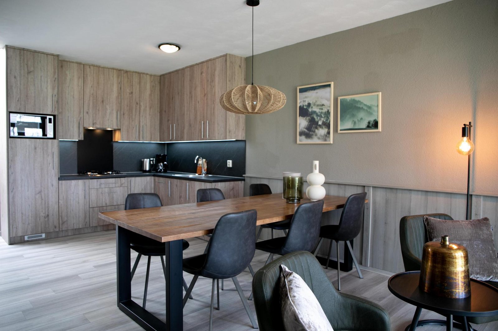 Deze volledig ingerichte geschakelde bungalow is geschikt voor maximaal 6 personen. Het bestaat uit een helft van de geschakelde bungalows. De bungalow beschikt over ruime woonkamer met open keuken. De woonkamer is voorzien met standaard apparatuur zoals een flat screen tv, dvd speler en radio cd speler. De open keuken is voorzien van een 4-pits gasfornuis, koelkast met vriesvak, koffiezetapparaat, combi magnetron, vaatwasser en waterkoker. Er zijn drie slaapkamers waarvan één slaapkamer met een tweepersoonsbed en twee slaapkamers met twee eenpersoonsbedden. De badkamer is voorzien van douche en er is een aparte toilet.