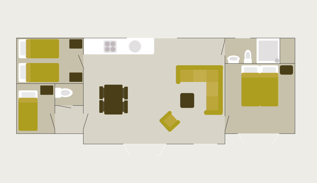 Deze ruime en moderne villa biedt plaats aan zes personen en ligt dicht bij alle parkfaciliteiten. Ontworpen voor ontspanning en gemak, beschikt de villa over een gezellige woon- en eetkamer met televisie en een volledig uitgeruste keuken. De keuken is voorzien van: