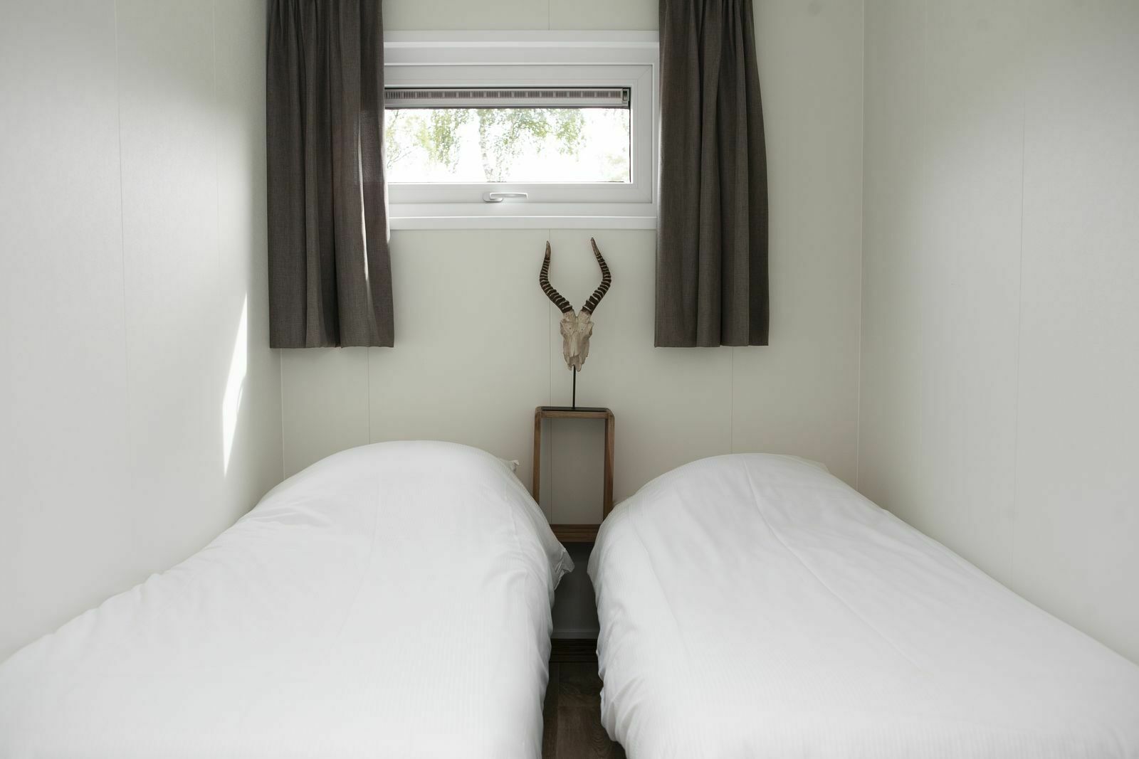 De villa beschikt over drie slaapkamers: twee met elk twee eenpersoonsbedden en één met een stapelbed, wat voldoende ruimte biedt voor zes personen. Er is ook een badkamer met een ruime douche en een apart toilet.