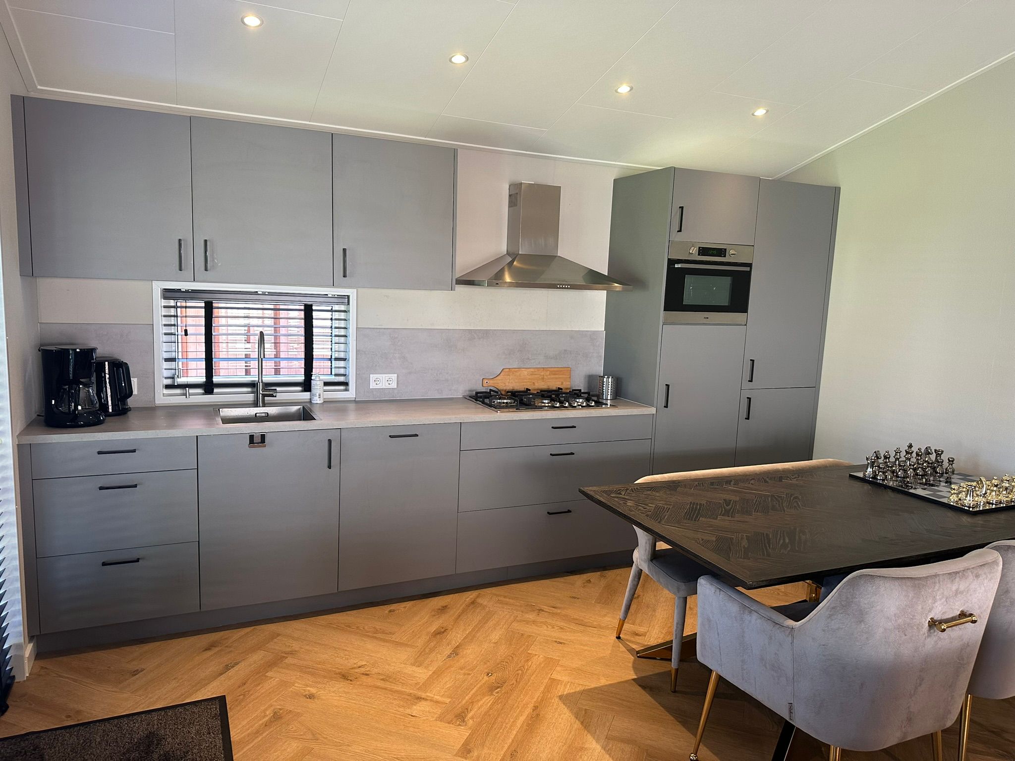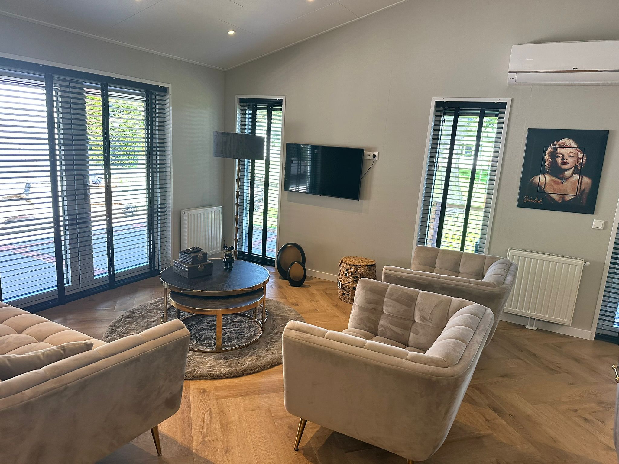 Ontdek een sfeervol en elegant verblijf, ontworpen voor ontspanning en quality time samen. Deze ruime lodge beschikt over een lichte woonkamer met airconditioning en openslaande deuren naar een privé, omheind terras – ideaal voor gezinnen met kinderen of huisdieren. De comfortabele loungeset buiten nodigt uit tot ontspannen, terwijl de moderne keuken van alle gemakken is voorzien om samen heerlijke maaltijden te bereiden.