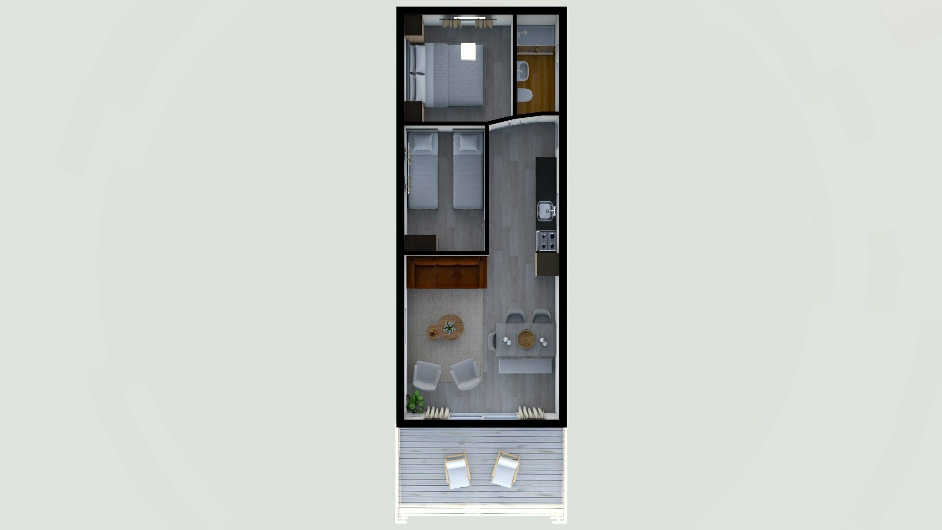 Het bungalette beschikt over twee slaapkamers: