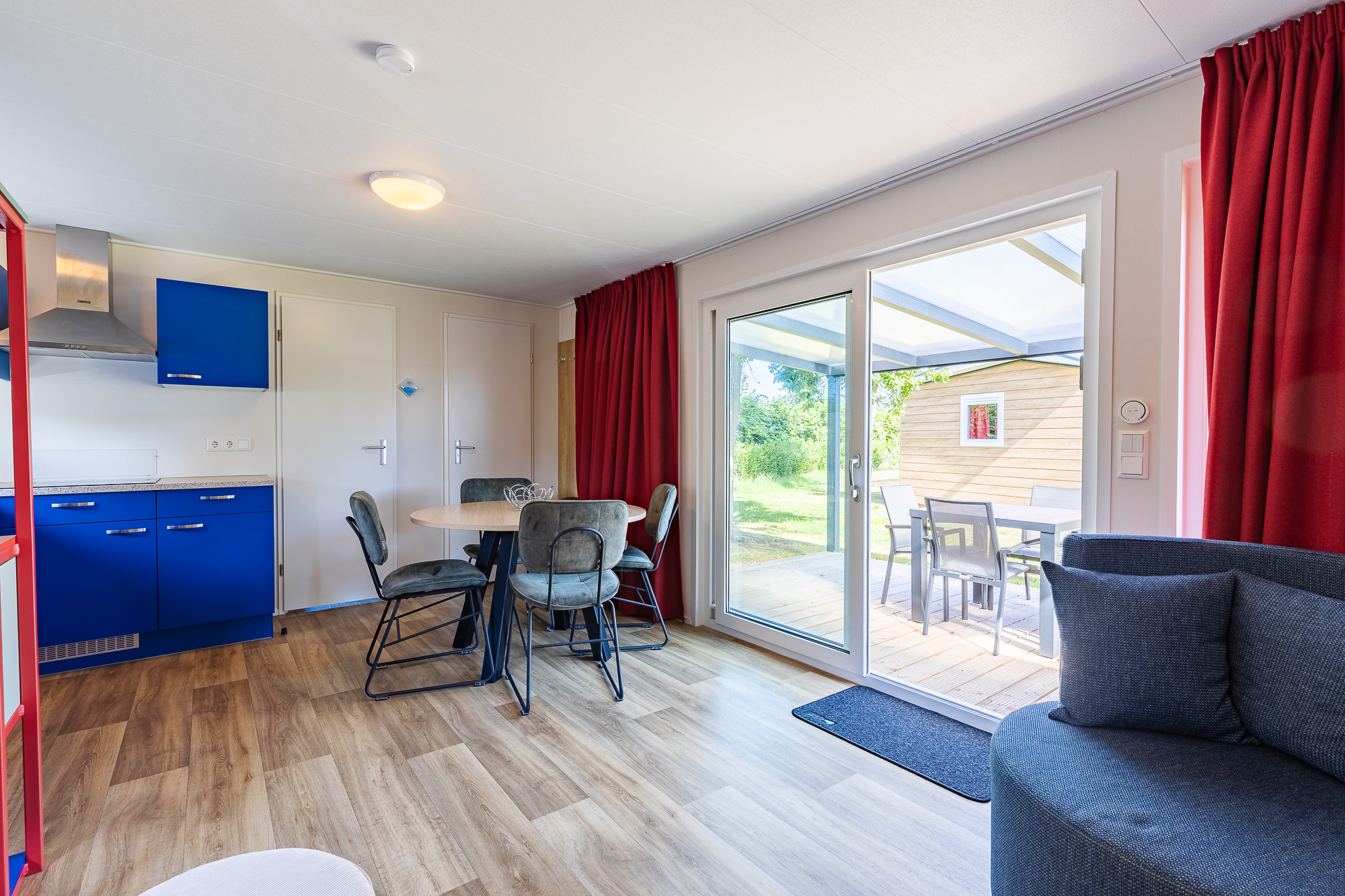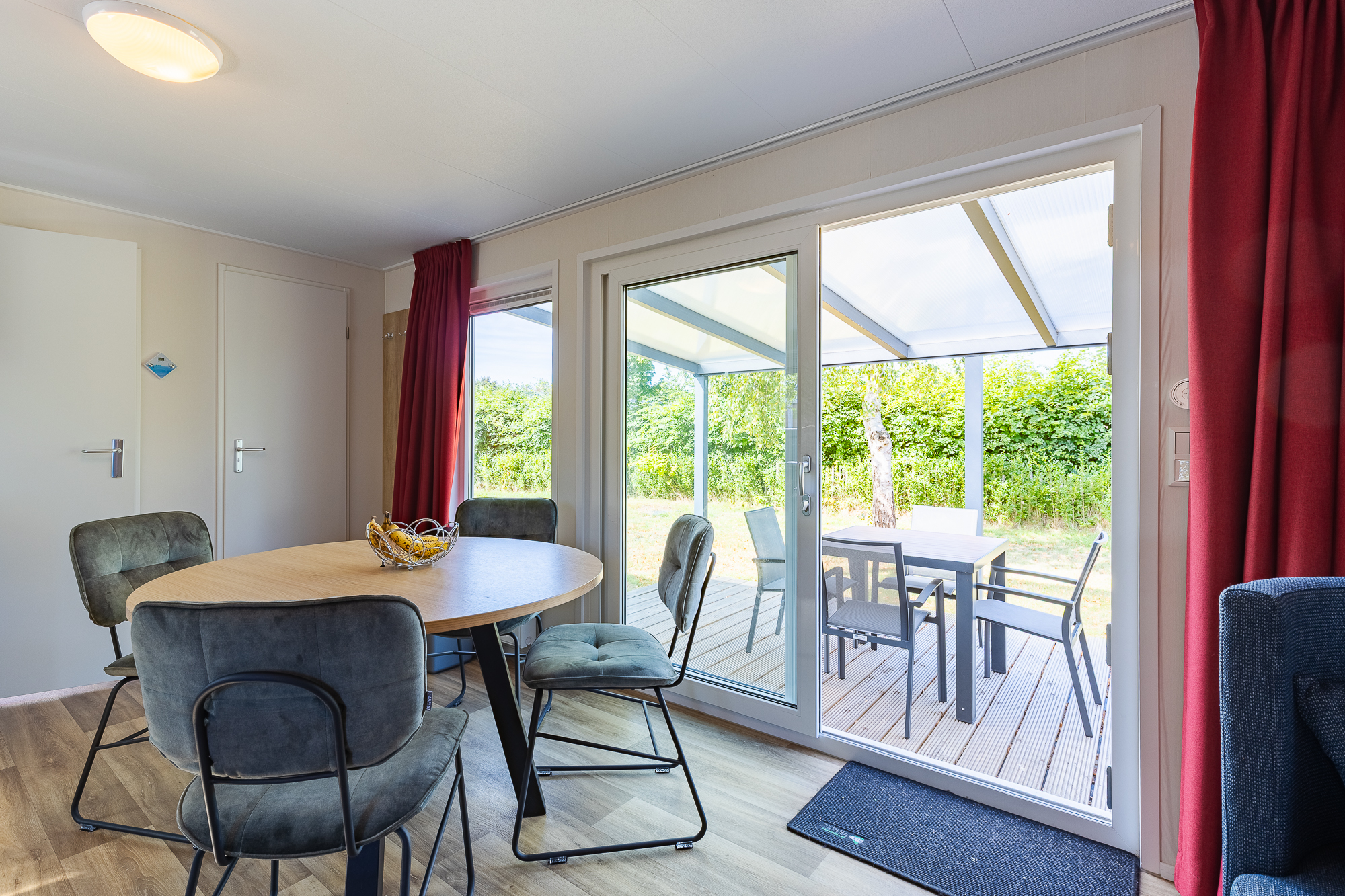 Het omliggende vakantiepark biedt tal van kindvriendelijke faciliteiten, zoals een waterspeeltuin, animatie, binnen- en buitenspeelplaatsen en een mini-bioscoop. Praktische voorzieningen zoals een supermarkt, restaurant, snackbar, wasserette, fietsverhuur en gratis WiFi maken uw verblijf extra comfortabel.
