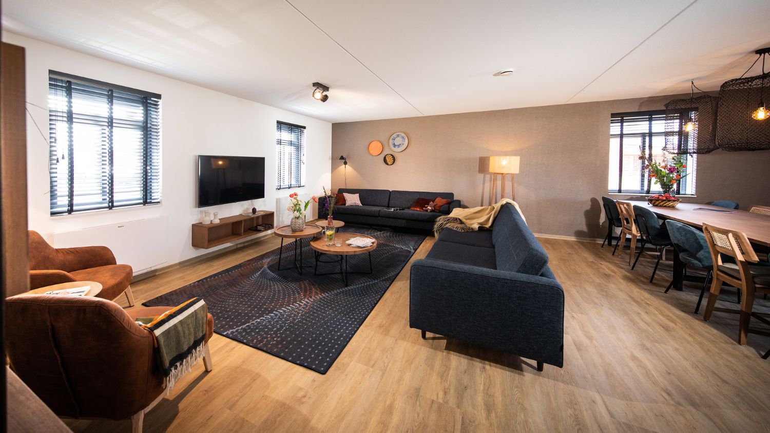 Deze vrijstaande vakantievilla van circa 205 m2 beschikt over een ruime en lichte woonkamer met een zit- en eethoek en televisie met Chromecast. De luxe open keuken is voorzien van een grote koelkast met vriesvak, een 5-pits inductie kookplaat, een filter- en capsule koffiemachine, een waterkoker, een vaatwasser, een combi-oven met magnetron en een extra oven.