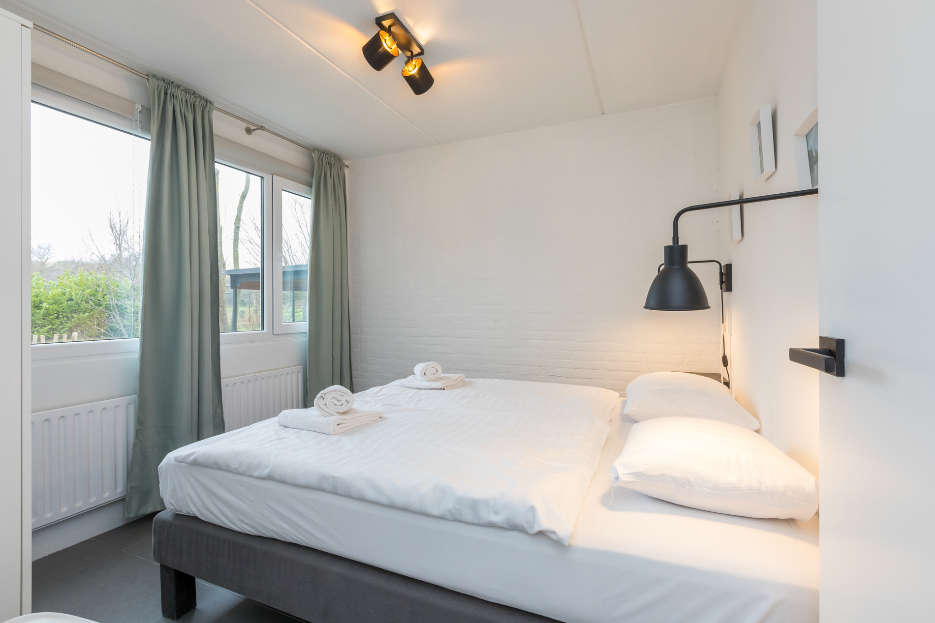 De woning heeft drie slaapkamers: twee met tweepersoonsbedden (1,60 m breed), één op de begane grond en één op de bovenverdieping, en een derde slaapkamer met een stapelbed op de bovenverdieping. De badkamer is voorzien van een inloopdouche, een wastafel en een toilet. Er is parkeergelegenheid op het terrein beschikbaar.