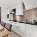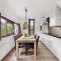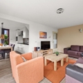 Binnen vindt u een gezellige woonkamer met een LCD-tv en grote ramen die veel natuurlijk licht binnenlaten. Bij mooi weer kunt u eenvoudig de schuifdeuren naar het terras openen en genieten van de frisse lucht. De open keuken is zichtbaar vanuit de woonkamer en is voorzien van een Nespresso-machine, een filterkoffiemachine, een vaatwasser en een magnetron of combimagnetron. Een van de slaapkamers, gelegen op de begane grond, is voorzien van twee aparte boxspringbedden. De badkamer beschikt over een douche, wastafel en wasmachine. Er is een apart toilet en een berging met een extra wasmachine in de gang.