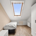 Op de eerste verdieping vindt u twee andere slaapkamers, elk met twee luxe boxspringbedden. Deze bedden kunnen naar wens uit elkaar worden gehaald of tegen elkaar worden gezet.