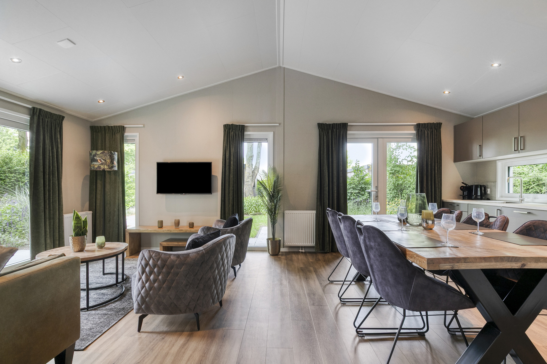 - Woonruimte: Open keuken, tv, eethoek, zithoek en wifi