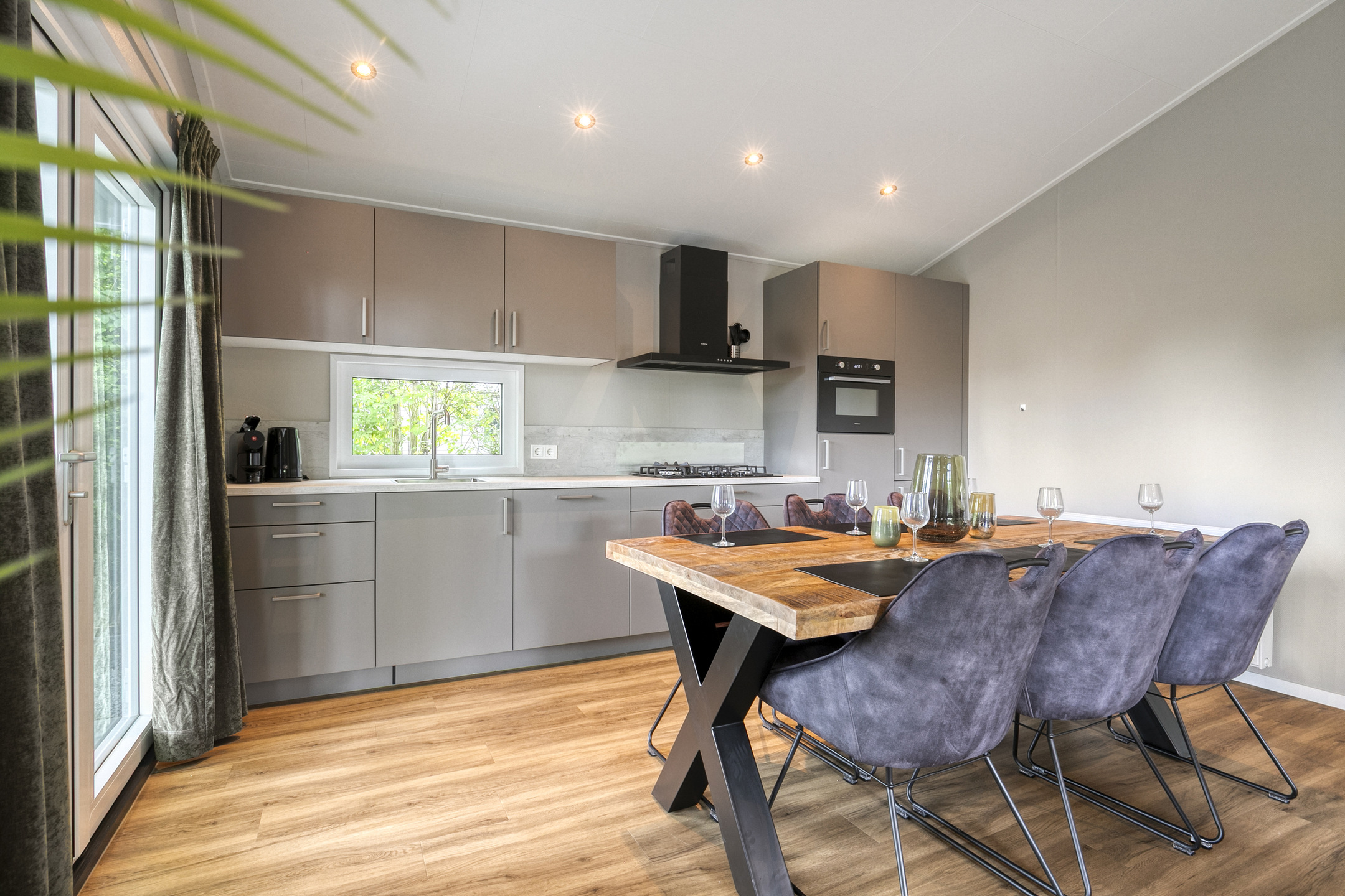 - Keukenvoorzieningen: DE-koffiezetapparaat (met kopjes), koelkast, vriezer, magnetron, vaatwasser, gasfornuis en waterkoker
