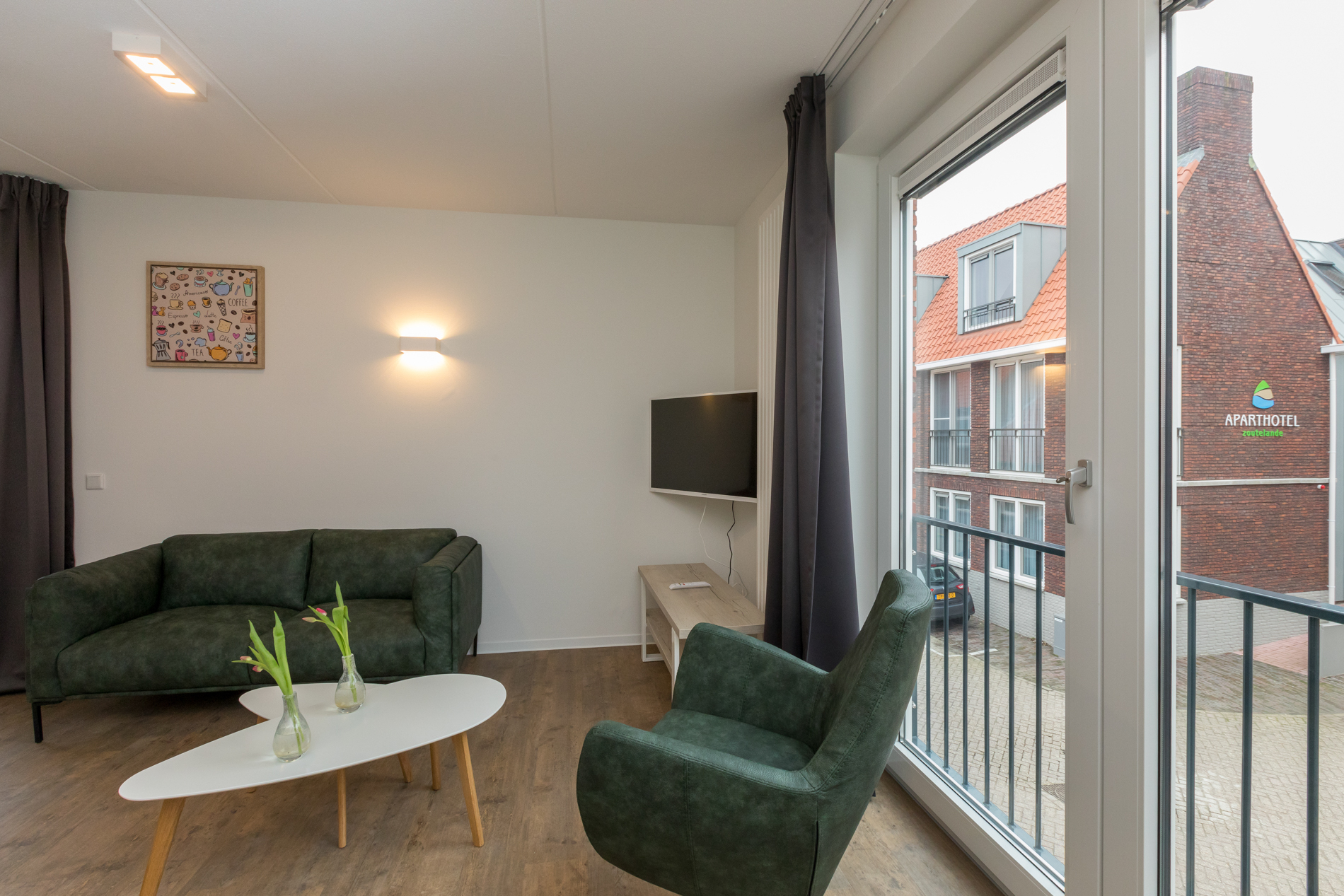 Aparthotel Zoutelande bestaat uit moderne studio’s en appartementen verspreid over drie gebouwen. Alle accommodaties zijn voorzien van basisvoorzieningen, zoals een privé-keuken of kitchenette, een comfortabel bed voor een goede nachtrust en een ruime badkamer. Elk appartement heeft één gratis parkeerplaats. De meeste accommodaties van ons Aparthotel in Zoutelande hebben een gereserveerde parkeerplaats op een verlichte parkeerplaats, op loopafstand van de appartementen. Daarnaast ligt ons Aparthotel slechts op 1 minuut lopen van het strand!