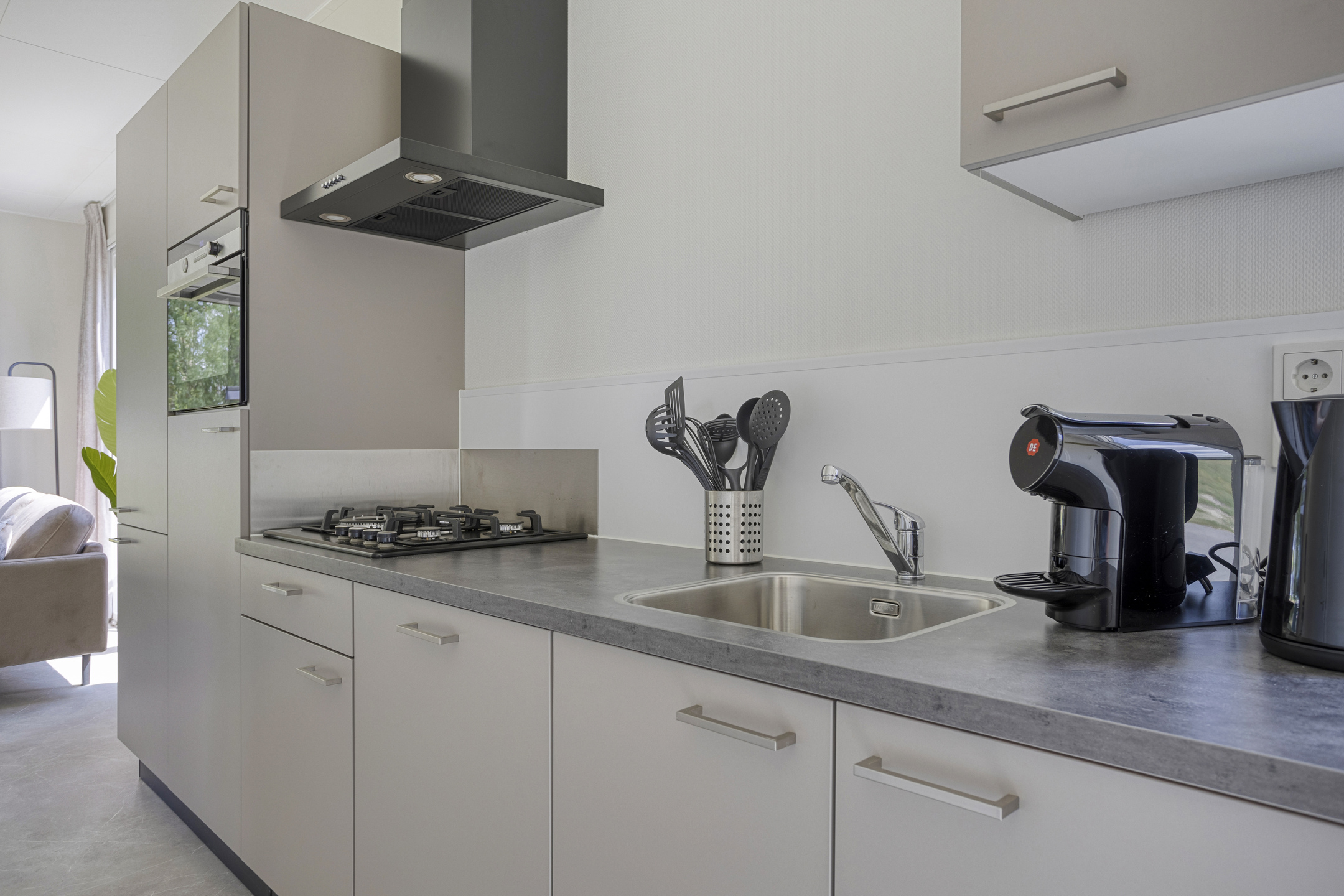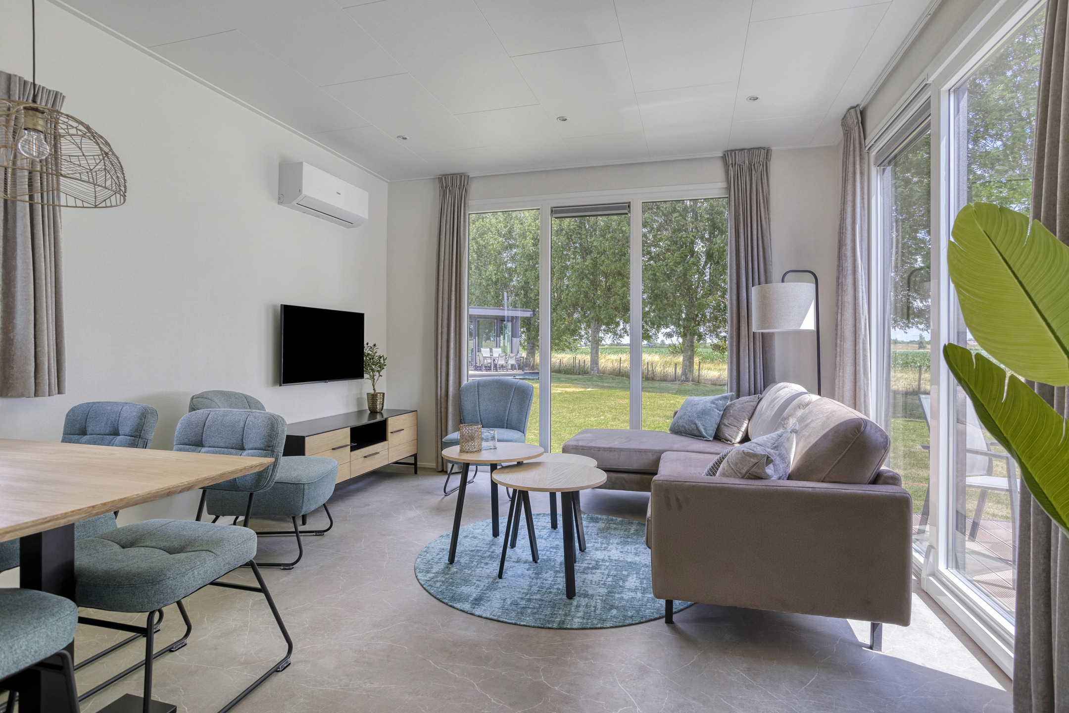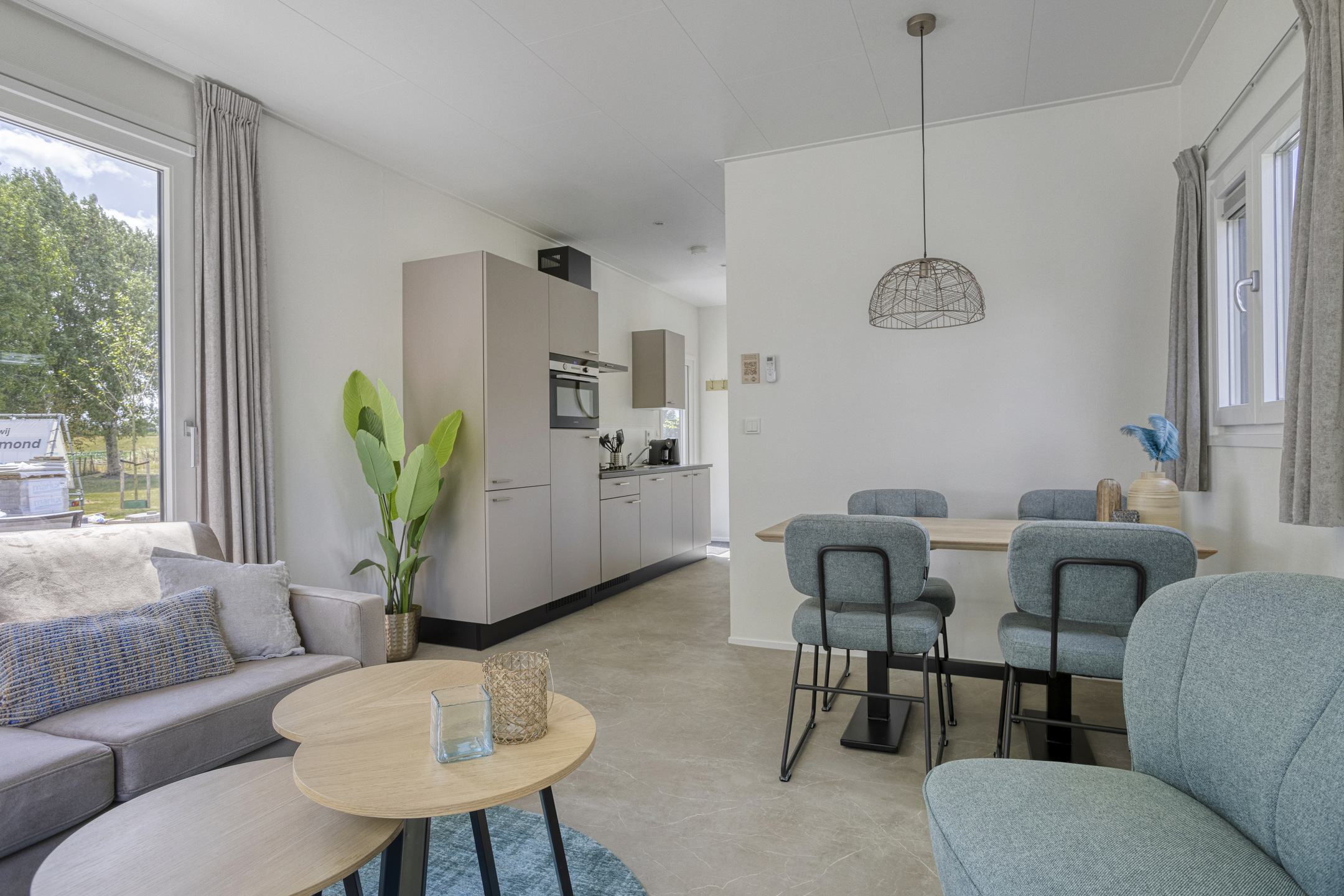 - Woonruimte: Ontspan in een gezellige zithoek met een Smart TV-perfect om tot rust te komen na een dag verkennen of werken. Een eethoek completeert de ruimte en biedt een comfortabele plek voor maaltijden of het plannen van je volgende avontuur.