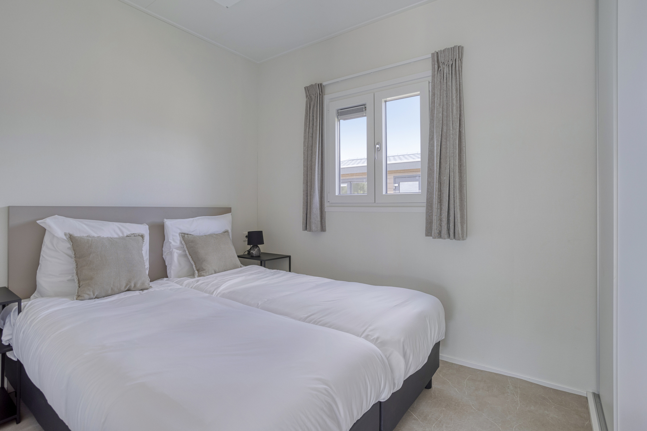 - Slaapkamers: Twee gastvrije slaapkamers, elk ingericht met eenpersoonsbedden-vier in totaal. De bedden zijn vers opgemaakt bij aankomst om een rustgevend en comfortabel verblijf te garanderen.