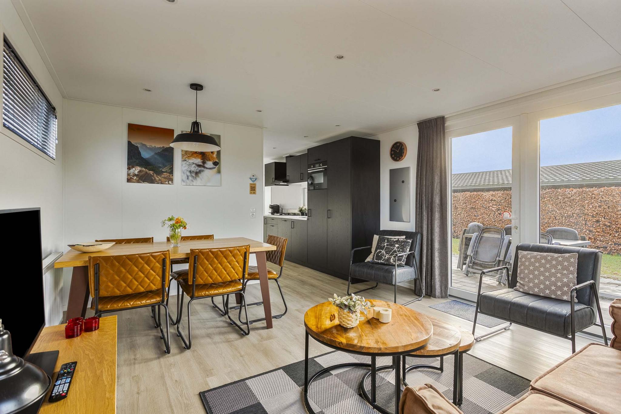 - Woonkamer met tv, eethoek en zitkamer.