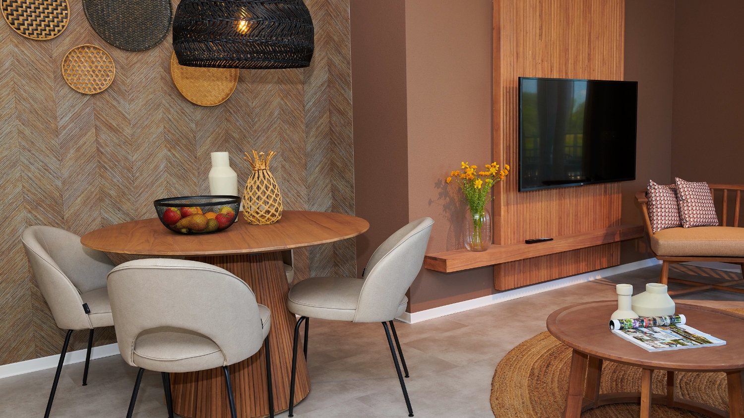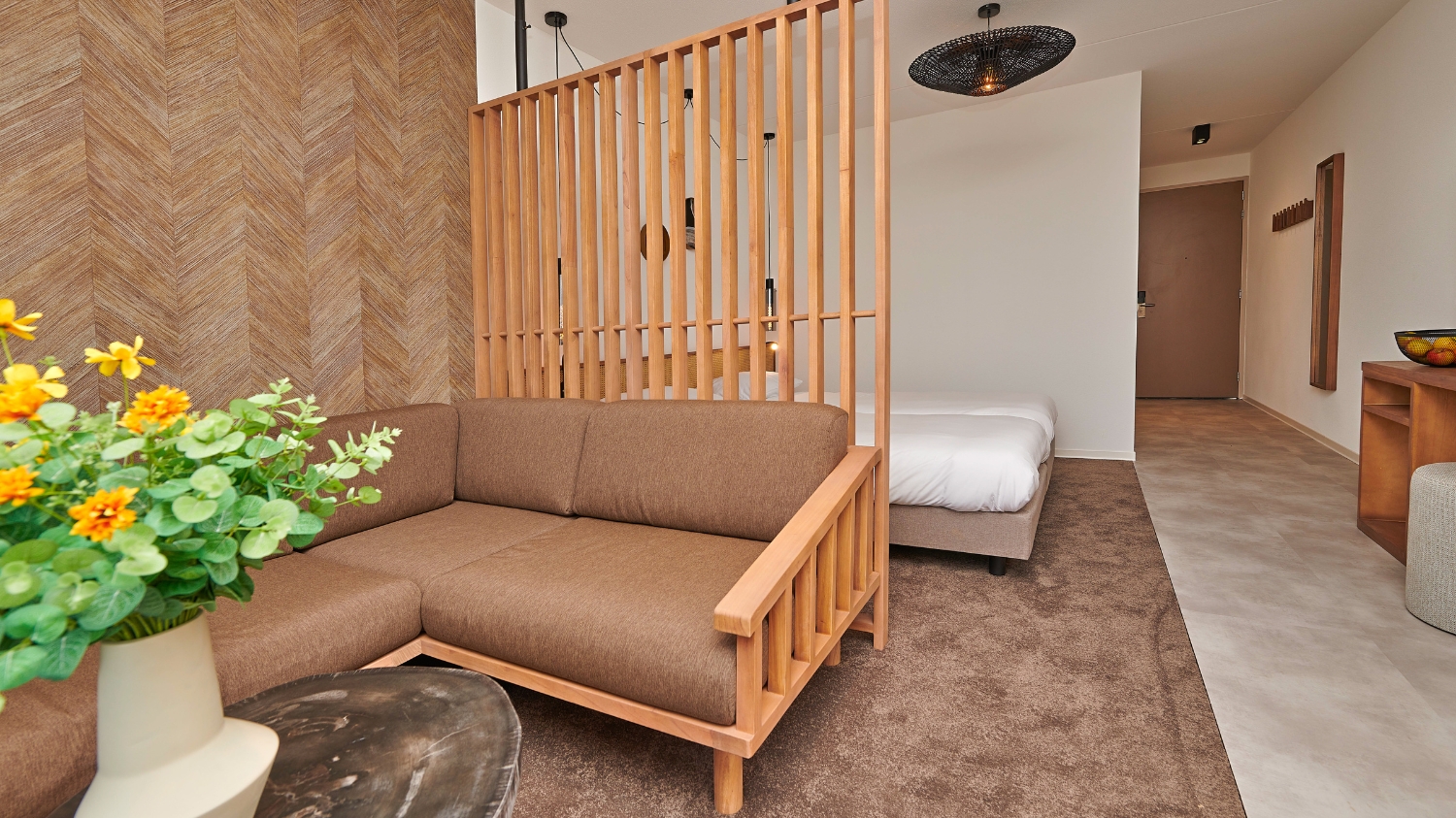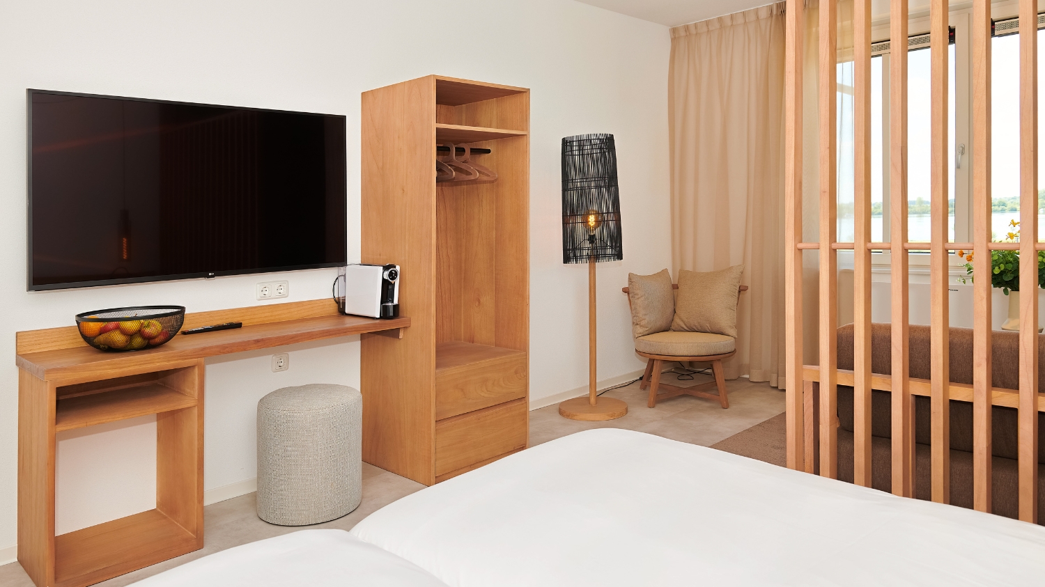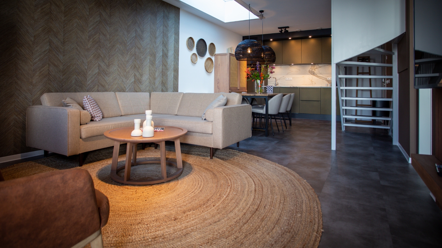 De indeling en de stijl van het interieur kan per appartement verschillen. Het appartement bestaat uit een maisonnette en een tweepersoons hotelkamer die met elkaar verbonden zijn middels een eigen hal.
