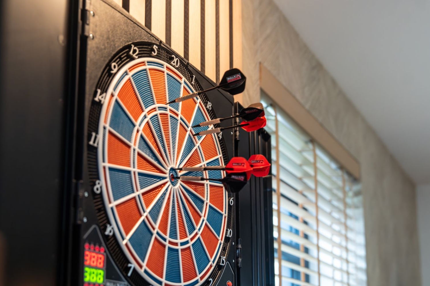 Onze Premium Game & Grill villa's zijn uitgerust met een uitgebreid gaming- en tv-pakket, waaronder een gigantische 75-inch televisie en een hoogwaardig audiosysteem. Je vindt er ook een Nintendo Switch-console, een elektronisch dartbord en een 2-speler Donkey Kong arcadekast boordevol met 3000 klassieke games.