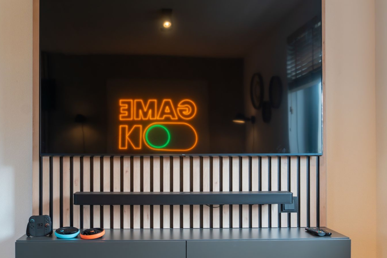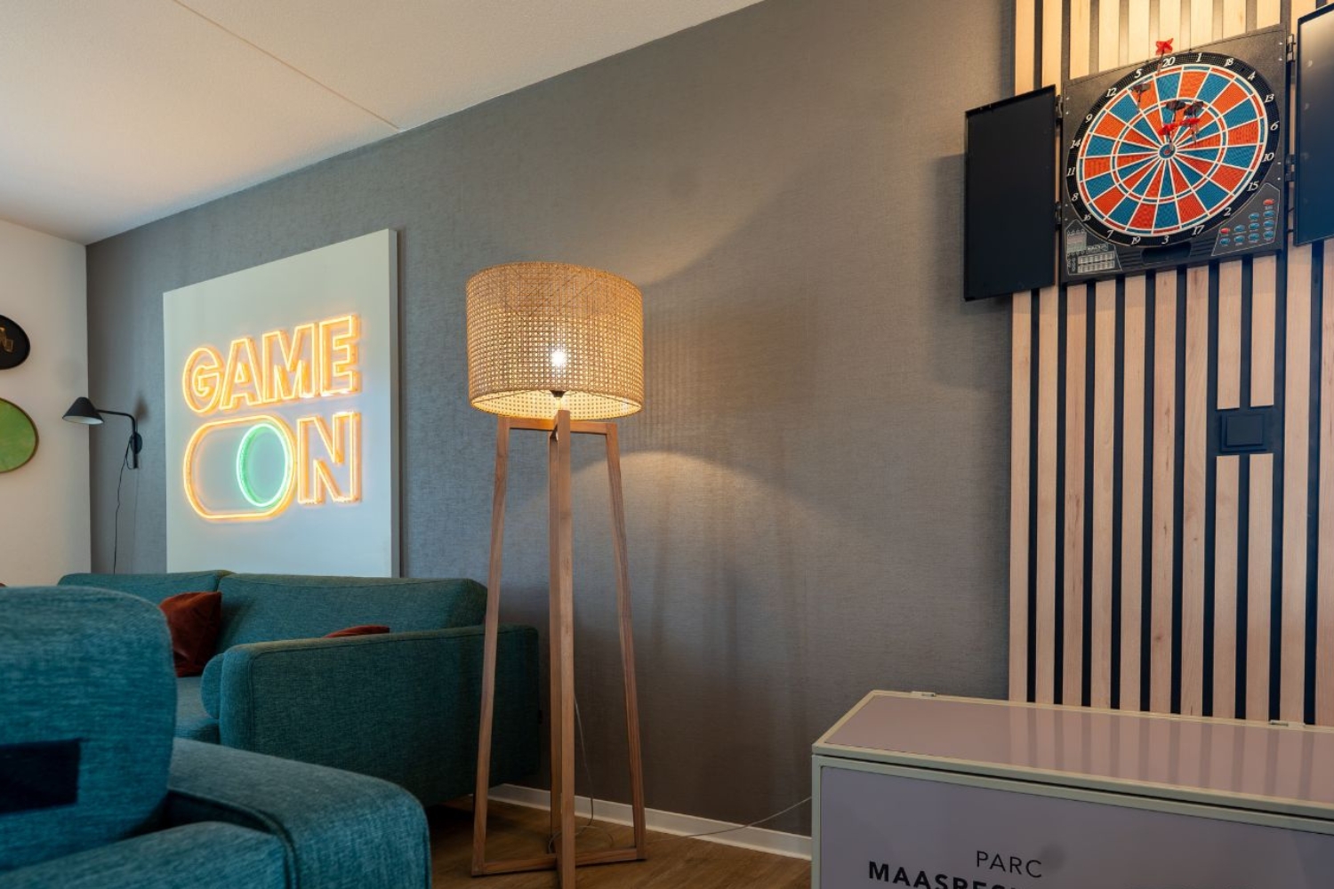 De leefruimtes zijn ontworpen voor ultiem comfort, met onder andere een speciaal paneel en meubel voor de soundbar en tv, en sfeervolle “Game On” neonverlichting die direct de juiste toon zet.