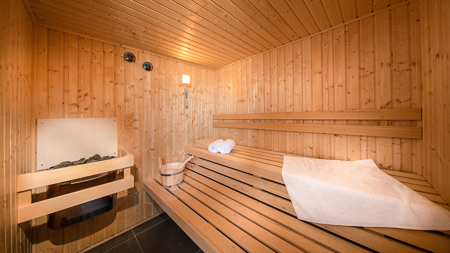Op de eerste verdieping zijn twee slaapkamers. Beide slaapkamers zijn voorzien van twee eenpersoons box springbedden. De luxe badkamer is voorzien van een wastafel, inloopdouche én sauna. Er bevindt zich een veiligheidshekje voor kinderen bovenaan de trap.
