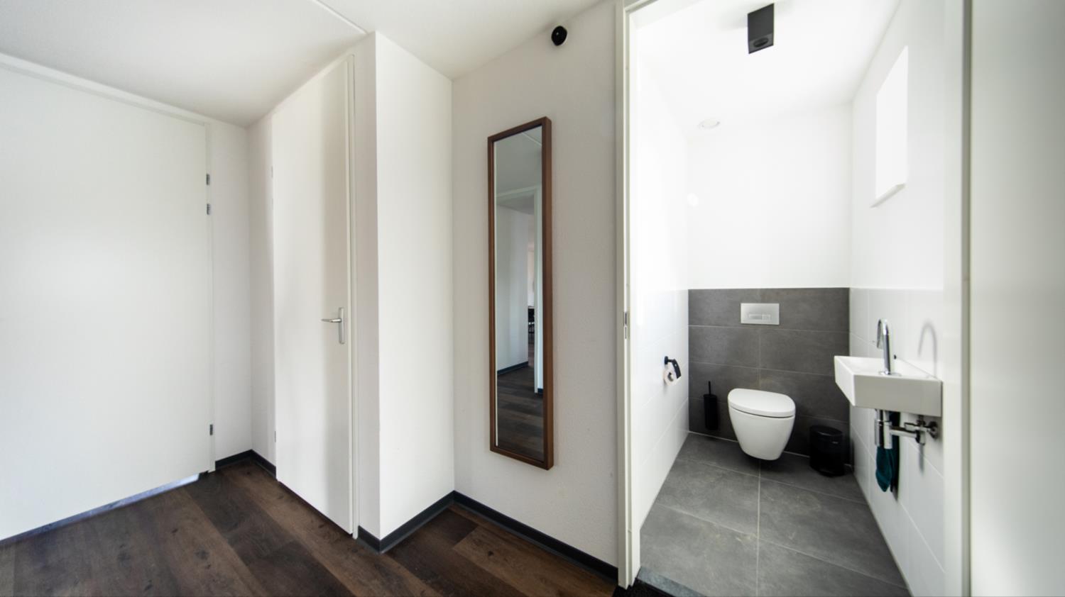 Er bevindt zich een veiligheidshekje voor kinderen bovenaan de trap. Op zowel de begane grond als de eerste verdieping is een afzonderlijk toilet aanwezig. De inpandige berging beschikt over een was-droogcombinatie.