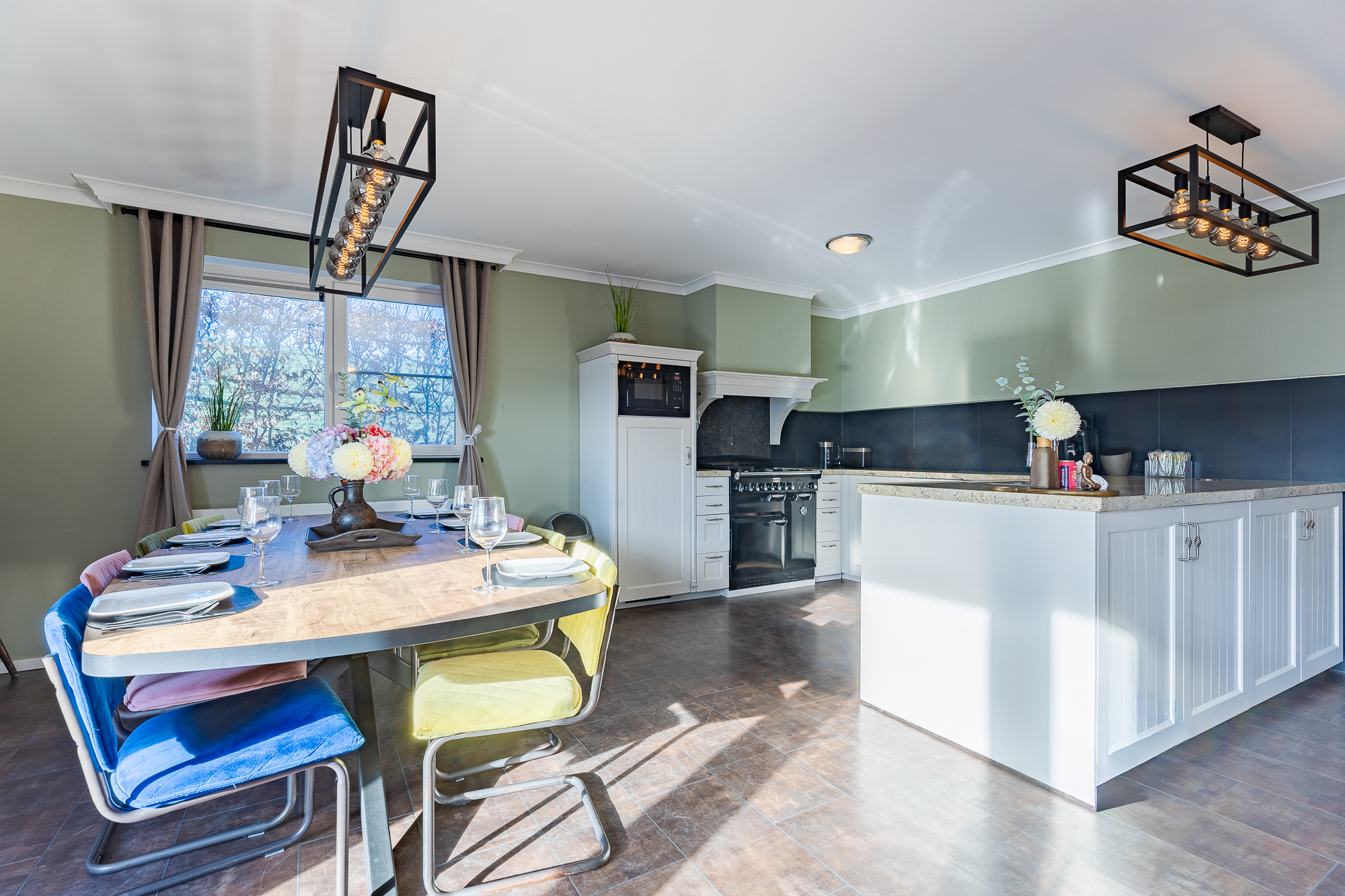 Stap binnen en voel u meteen thuis in dit ruime en gezellige vakantiehuis. De open woonkamer en keuken creëren een lichte, luchtige ruimte die perfect is om samen quality time door te brengen. De keuken is volledig uitgerust met een kookplaat, oven, magnetron, vaatwasser, koelkast met vriesvak, broodrooster, waterkoker, Senseo-koffiezetapparaat en alle benodigdheden om gemakkelijk maaltijden te bereiden.