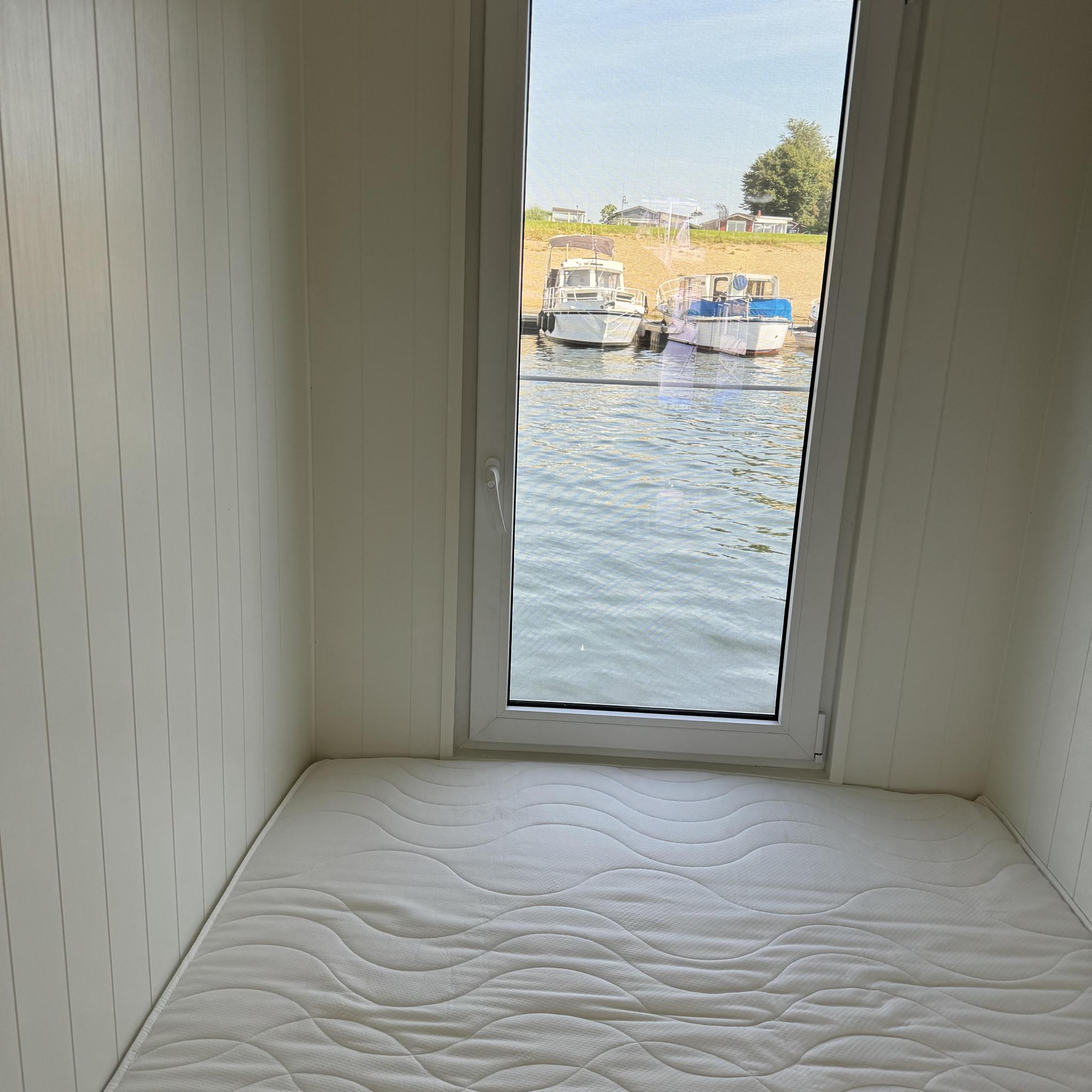 De woonboot heeft een slaapkamer met een tweepersoonsbed, waardoor het perfect is voor stellen die samen willen verblijven. Er is een extra slaapkamer met een stapelbed, zodat je met 4 personen kunt verblijven.